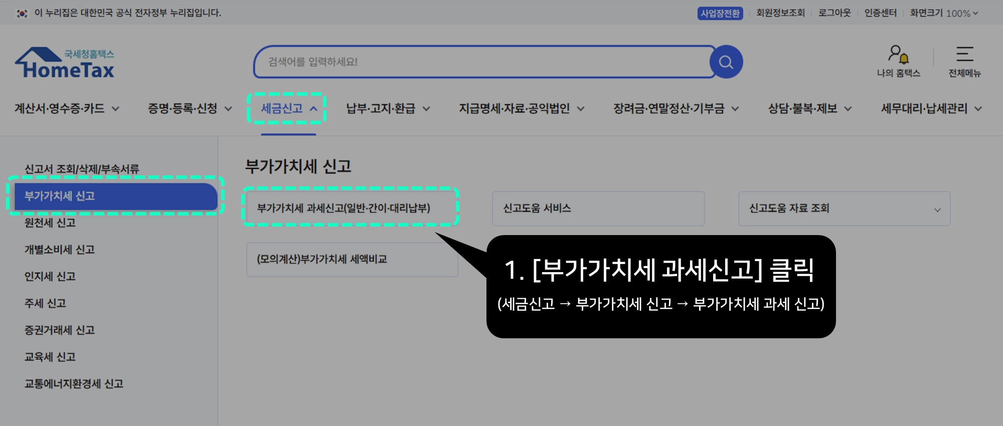 3. 부가가치세 신고 화면에 진입하기