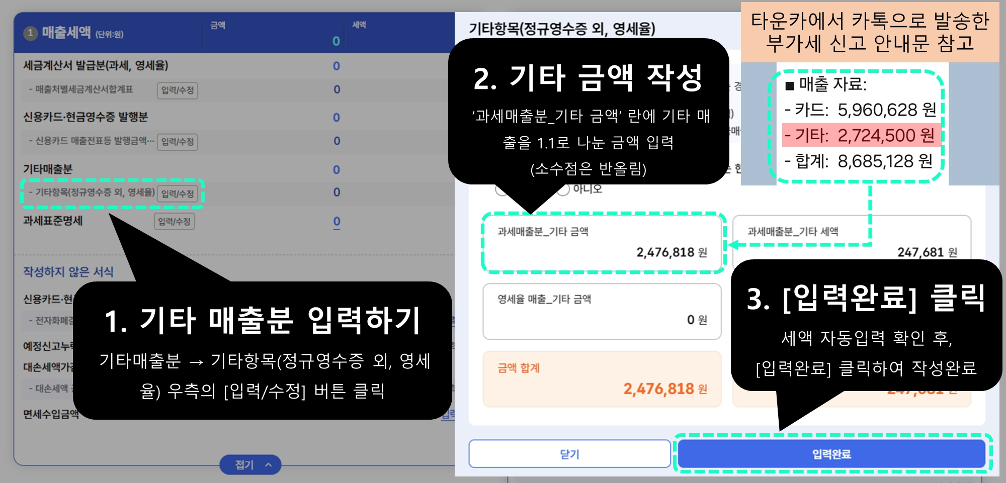 매출 자료에 [기타] 금액이 기재되어 있는 경우에만 입력