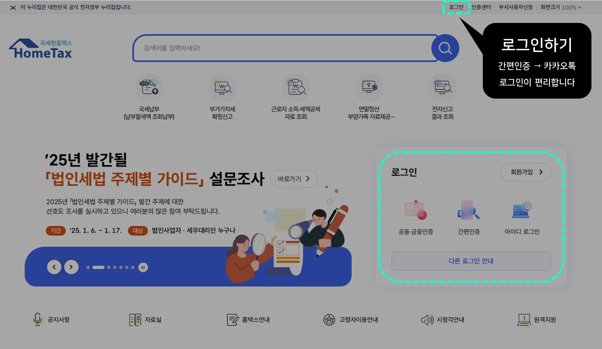 ① 홈택스 접속 및 로그인