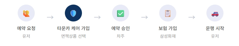 타운카케어는 선택 가입 상품이며, 예약이 승인된 이후 삼성화재 전용 보험을 반드시 가입해야 차량 이용이 가능합니다.