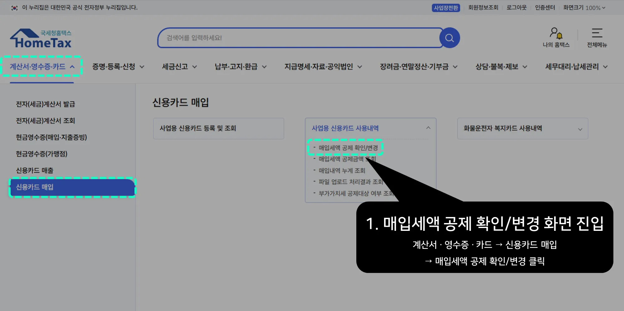 홈택스에서 사업용 신용카드를 미리 등록해둔 경우에만 해당